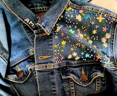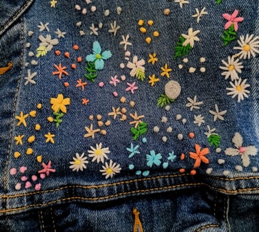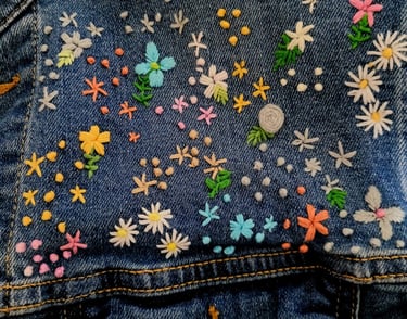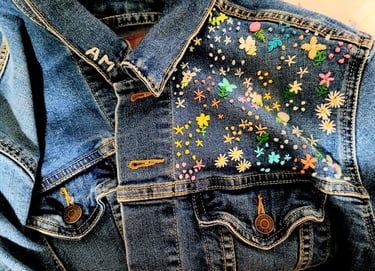 My very first project was a hand embroidered jean jacket. People loved it and asked where I bought it from, and if I could make one for them. This planted a seed in me and created a desire that would soon blossom into a custom embroidery shop.